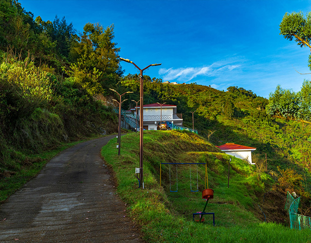 A scenic walking path offering panoramic views of the valleys and villages below. Early morning walks here are refreshing and peaceful, while sunsets paint the sky with golden hues.